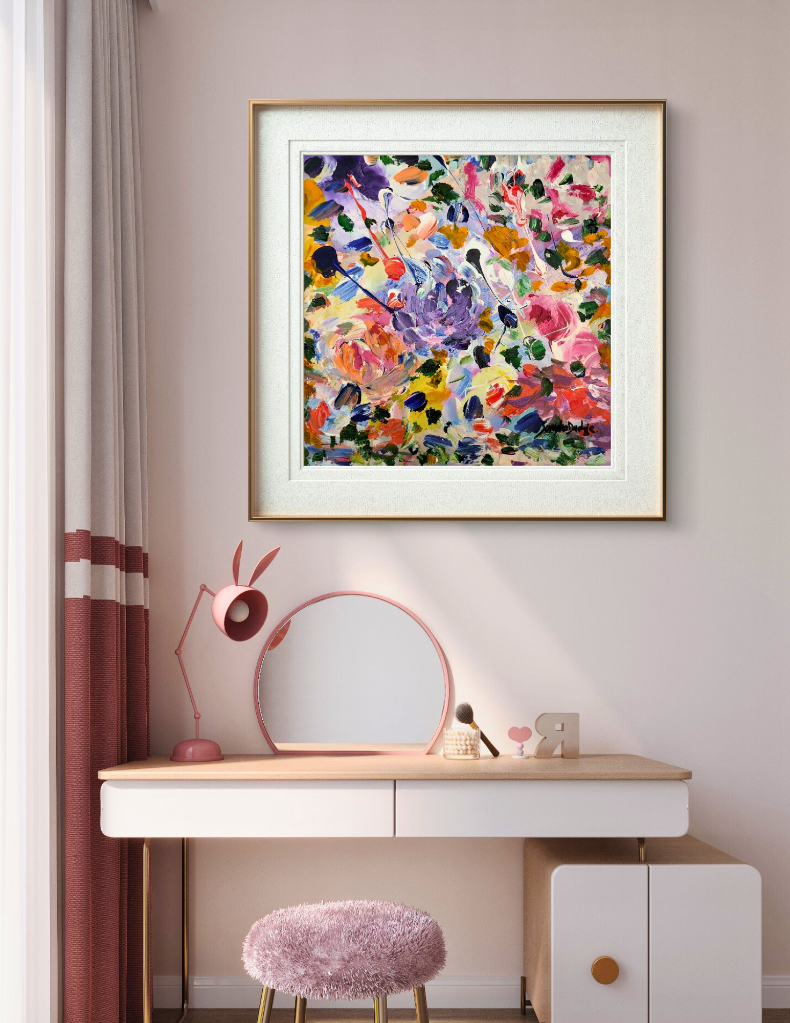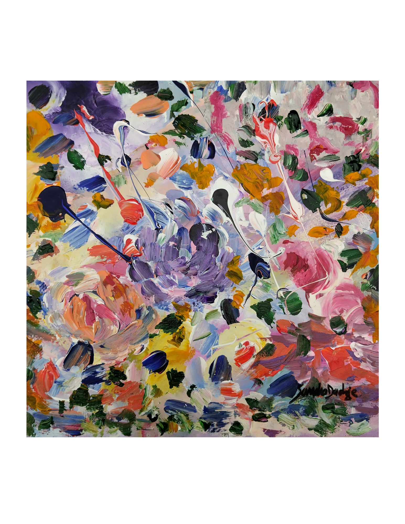 The universe moves to a sacred rhythm and dance in the hands of the creator. LA DANCE DES ETOILESpainted on 12inx12in canvas sheet.