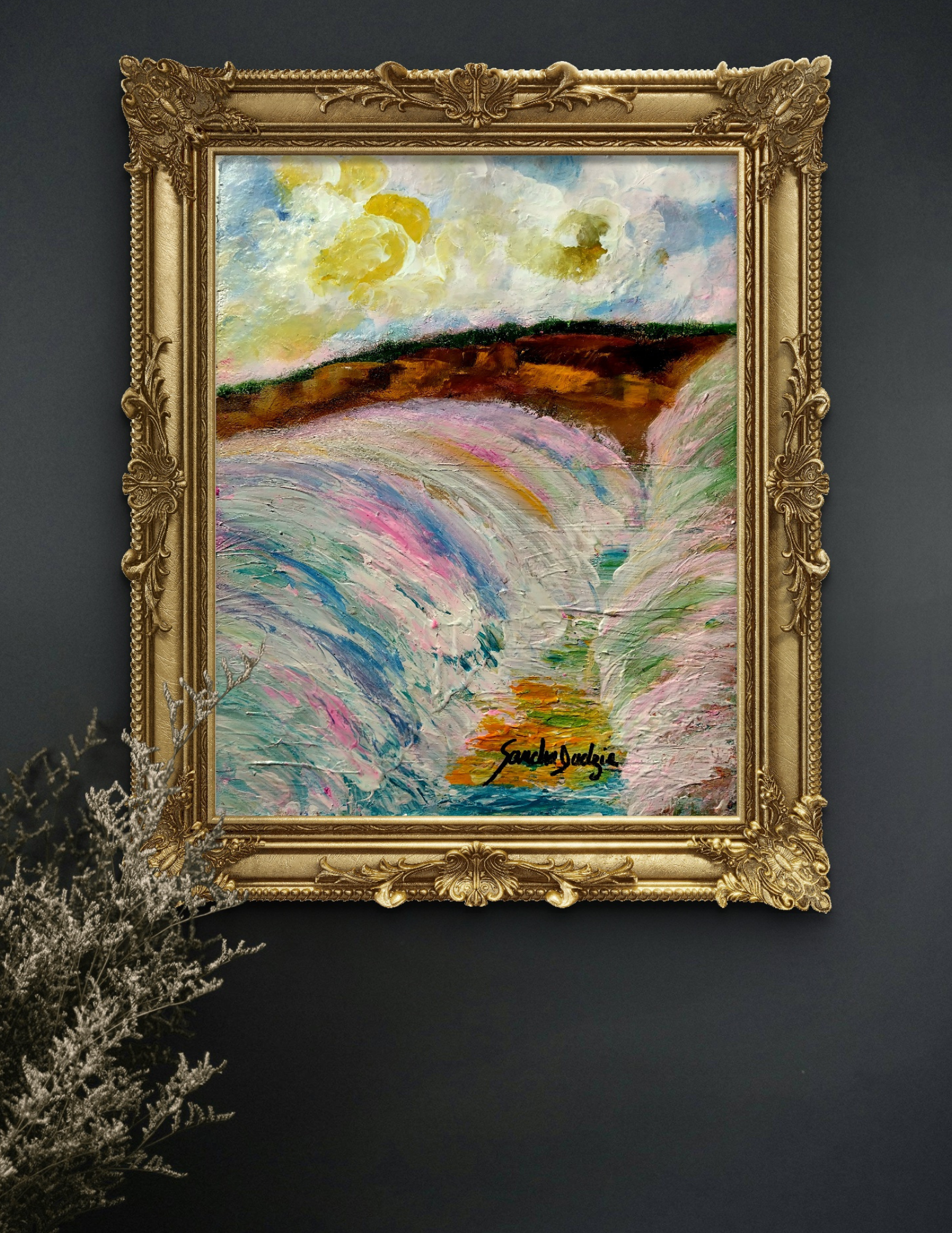 This painting captures the power of God’s deliverance through the waters. Waves rise in strength, yet the horizon glows with promise. Exodus is not just a seascape; it’s a reminder of courage, divine protection, and the journey toward new beginnings.