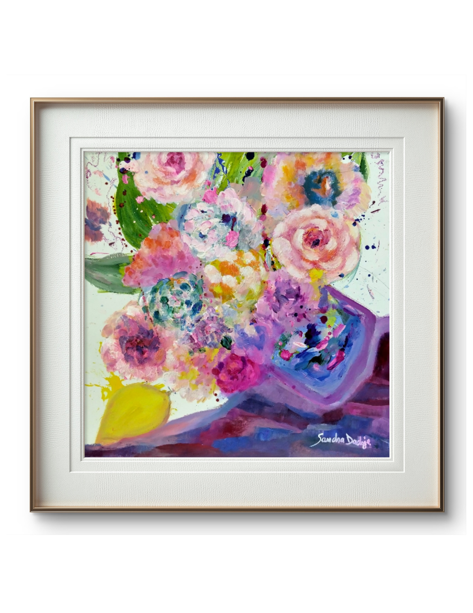 MELODY OF HEART” is a harmonious floral painting where flowers become the notes of a silent symphony. Each bloom, from soft pastels to vibrant hues, plays its part in a delicate arrangement that sings to the heart. The stems and petals weave together like musical strings, creating a rhythm of grace, joy, and tender emotion. A celebration of love, beauty, and the quiet music that flows through life.