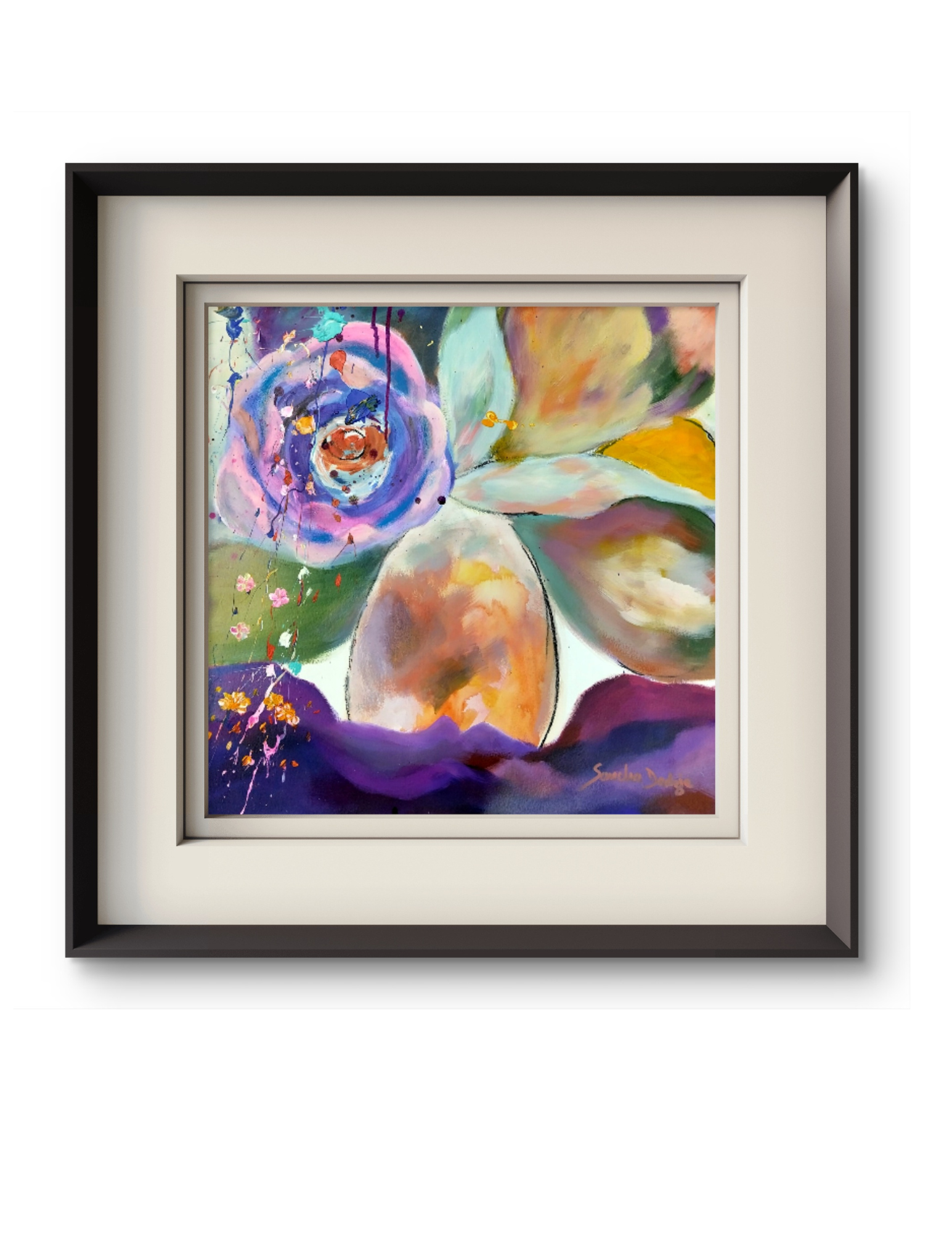 is a vibrant floral painting that speaks the language of love, emotion, and divine beauty. The bouquet, arranged gracefully in a glass vase, bursts with rich, warm tones orange, pinks, and golds symbolizing deep affection of emotional and spiritual passion ,a passion of heart . Each petal seems alive with feeling, as if echoing the heartbeat of passion and devotion. The light reflecting through the vase adds purity to the intensity, revealing that true passion flows from a heart touched by love and grace.